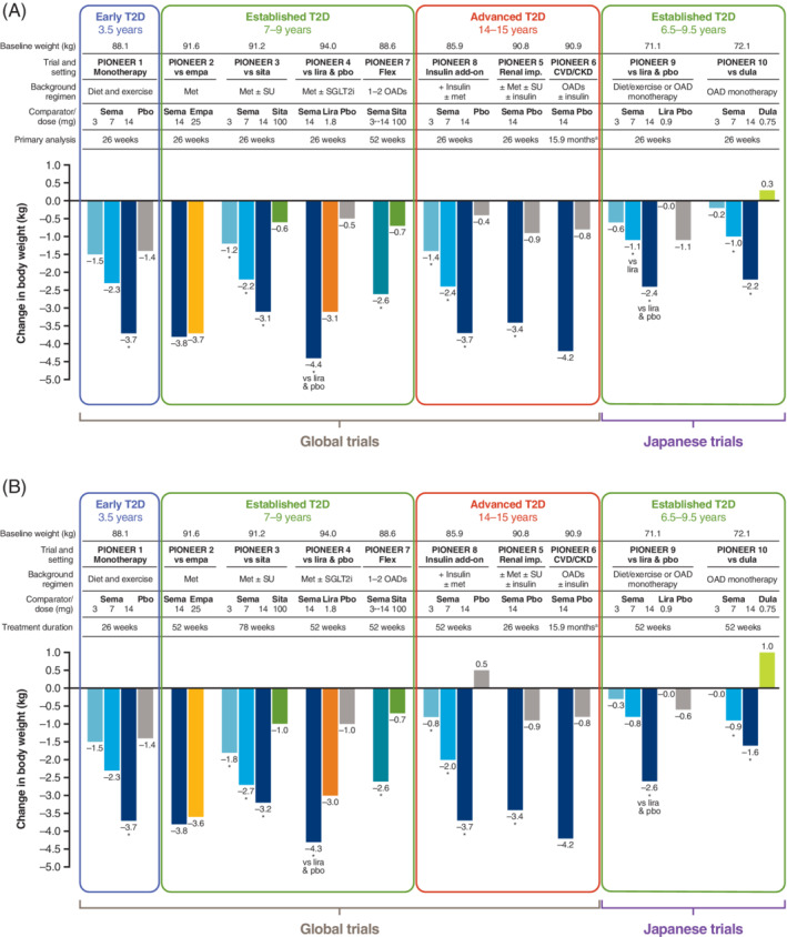 引用自:Thethi TK, Pratley R, Meier JJ. Efficacy, safety and cardiovascular outcomes of once-daily oral semaglutide in patients with type 2 diabetes: The PIONEER programme. Diabetes Obes Metab. 2020 Aug;22(8):1263-1277. doi: 10.1111/dom.14054. Epub 2020 May 13. PMID: 32267058; PMCID: PMC7384149.