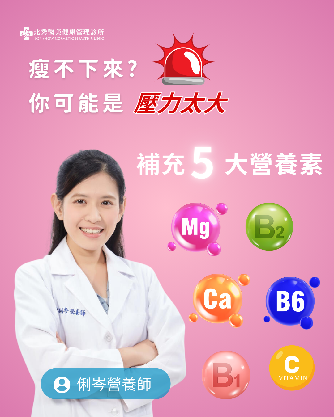 在現代社會,壓力無所不在,而「壓力型肥胖」正悄然成為健康隱患!許多人即使努力控制飲食,腰腹脂肪仍頑固堆積,甚至伴隨血糖波動、慢性疲勞等問題。北秀健康管理俐岑營養師,將提供從飲食到生活型態的完整解決方案,帶你徹底擺脫「越忙越胖」的惡性循環!